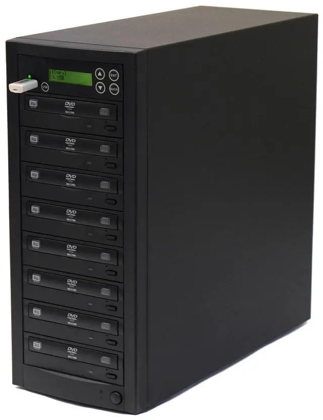 USB Flash Memory Pen Drive (not for external USB devices) to 7 Disc Duplication 1 to 5 Target Disc to Disc Duplication5-buttons control panel, includes Shortcut SmartKey (USB-to-disc duplication) with One-touch button next to USB reader slotConvert your important files from USB to your DVD disc within minutes. With the optional Media Expander the DUO will also copy SD, Micro SD, Mini SD, SDHC, MMC, MS & MS Duo devices to DVD or CD media. (Media Expander not included, sold separately)Advanced Diagnosis Mode-Troubleshoots and sets adjustment for optimal performanceSupported Recording Discs: DVD ROM, DVD-R, DVD-RW, DVD+R, DVD+RW, CD-DA, CD ROM, CD-R, CD-RW, Multi-session Photo CDT, CD-I, Video CD, CD ROM XA, & CD Extra (CD Plus)Selectable Burning Speeds and Automatic DVD/CD format recognitionMax Write Disc Speed: DVD-R: 24X, DVD+R: 24X, DVD-RW: 6X, DVD+RW: 8X, DVD+R DL: 8X, DVD-R DL: 8X, CD-RW: 40X, CD-R: 52X;(Actual write speed depends upon media & drive specifications)