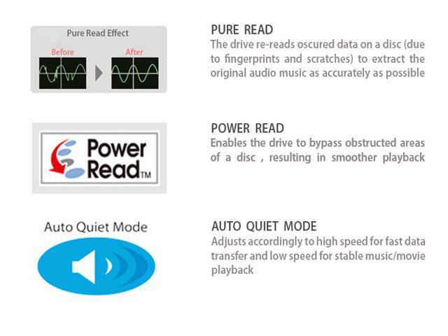 - SMOOTH MOVIE PLAYBACK: PowerRead feature enables the drive to bypass obstructed areas of a disc and attempt to move forward quickly to the next available data point, resulting in smoother playback
