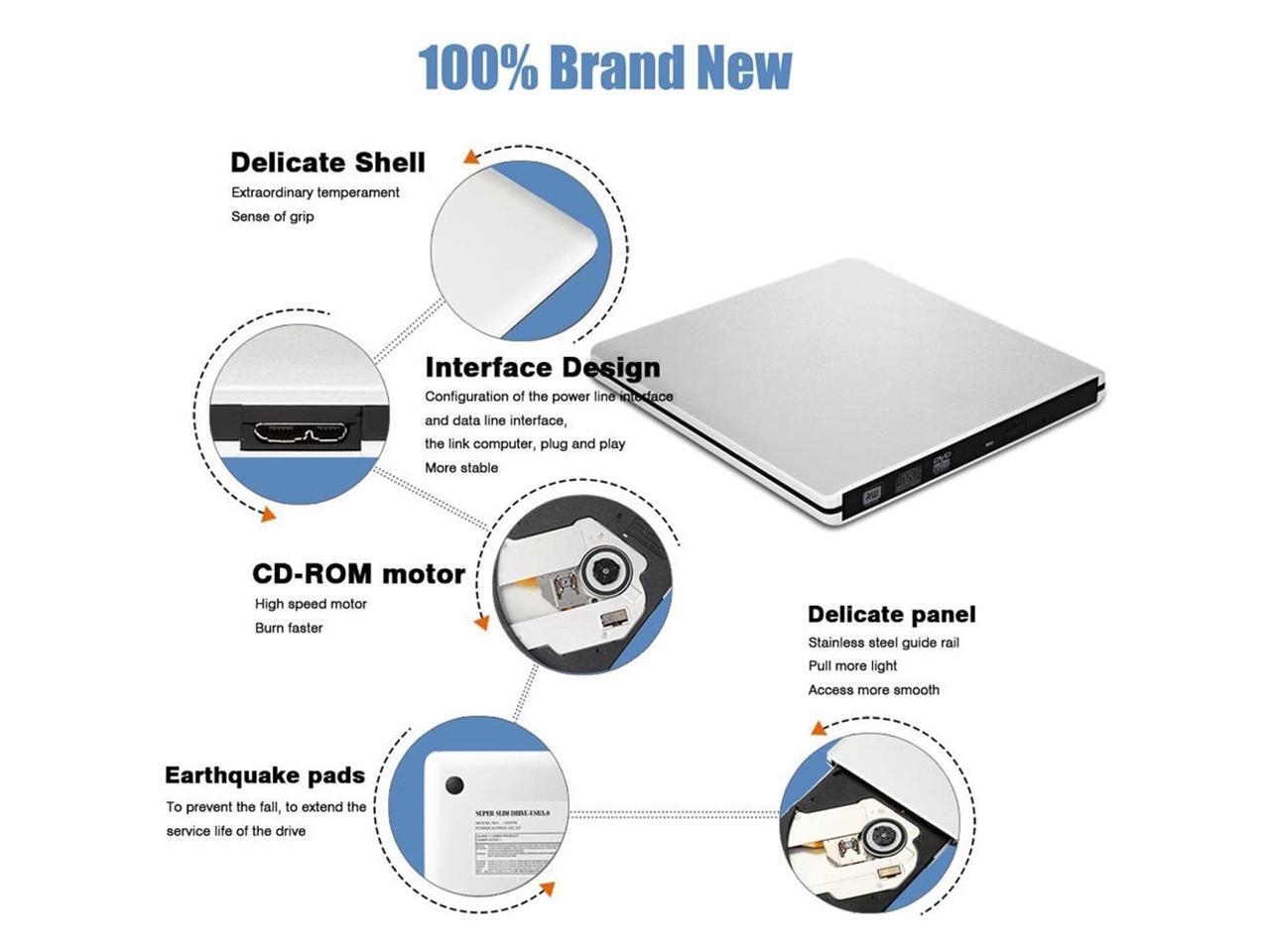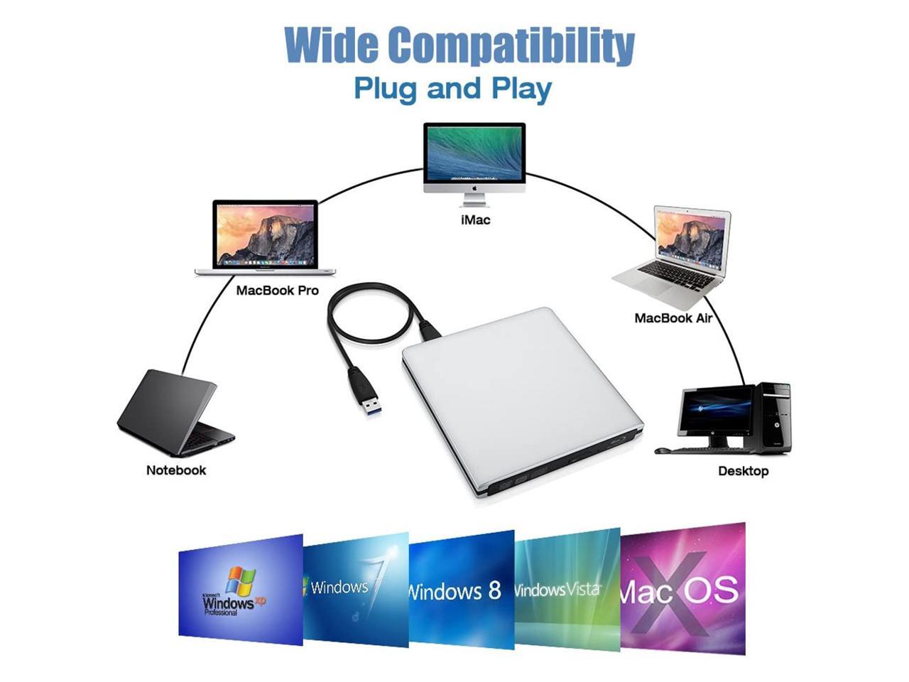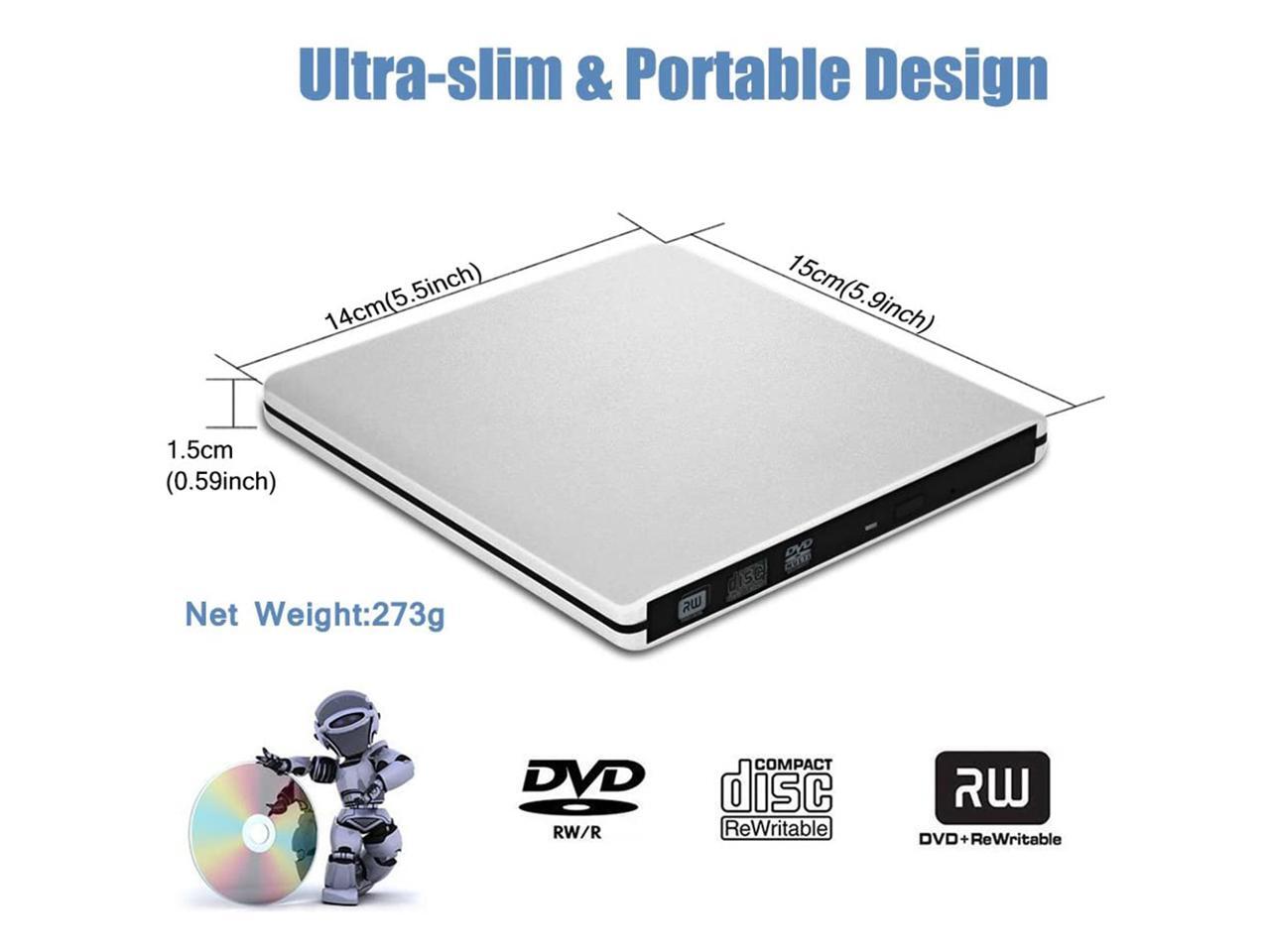 USB3.0 Ultra Slim External DVD Drive Burner Optical Drive CD+/-RW DVD +/-RW Superdrive Compatible with Mac MacBook Pro Air iMac and Laptop Mac OS Windows 10 8 7 XP
