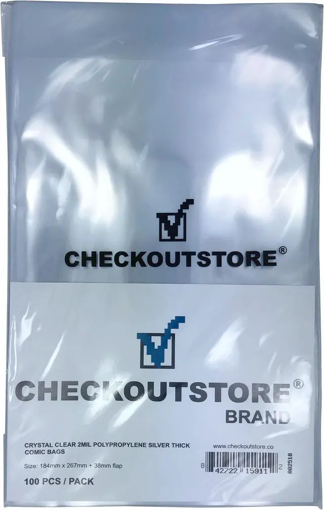 Get your hands on our top-quality CheckOutStore Crystal Clear Silver Age Thick Comic Book Bags! Designed to provide unparalleled protection and storage, our comic book bags are a must have for any collector or enthusiast. Made with high-grade, crystal clear OPP polypropylene material, they are an affordable solution for storing your most loved comics. These bags are not only low-cost but also acid-free archival quality, ensuring that your comic books are kept in pristine condition, with no damage or wear and tear.