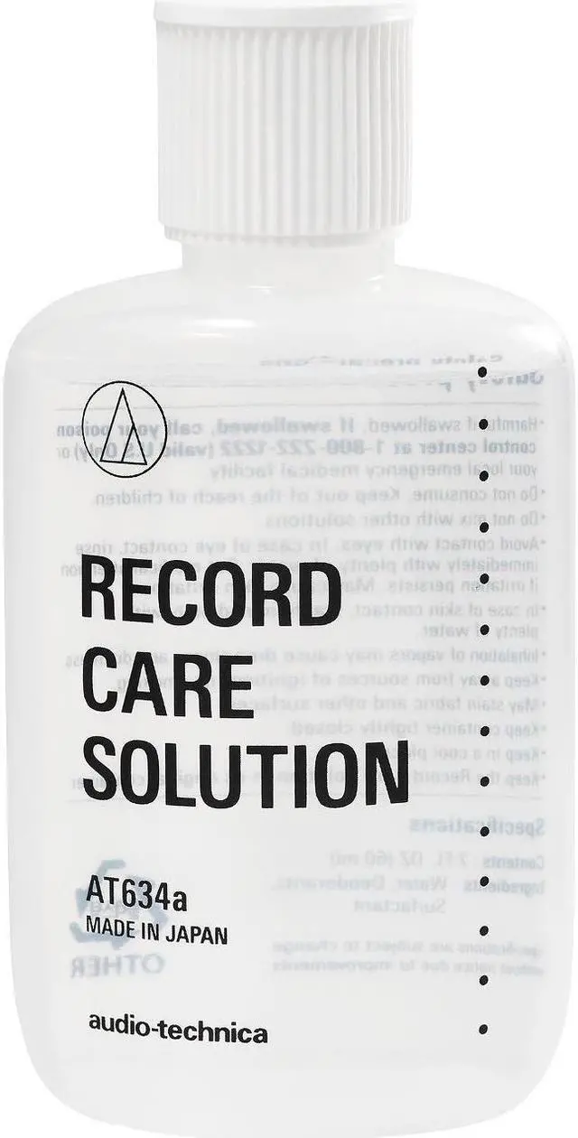 * Application/Usage: EP Record<br /> * Application/Usage: LP Record<br /> * Application/Usage: Phonograph Record<br /> * Application/Usage: EP Record<br /> * Application/Usage: LP Record<br /> * Application/Usage: Phonograph Record<br /> * Product Type: Cleaning Solution<br /> * Recommended Use: Fingerprint Remover<br /> * Recommended Use: Static Remover<br /> * Recommended Use: Microdust Remover<br /> * Recommended Use: Contaminant Remover<br /> * Product Type: Cleaning Solution<br /> * Recommended Use: Fingerprint Remover<br /> * Recommended Use: Static Remover<br /> * Recommended Use: Microdust Remover<br /> * Recommended Use: Contaminant Remover<br /> * Product Name: AT634a Record Care Solution<br /> * Brand Name: Audio-Technica<br /> * Brand Name: Audio-Technica<br /> * Country of Origin: Japan<br /> * Cleaner Volume: 2 fl oz<br />