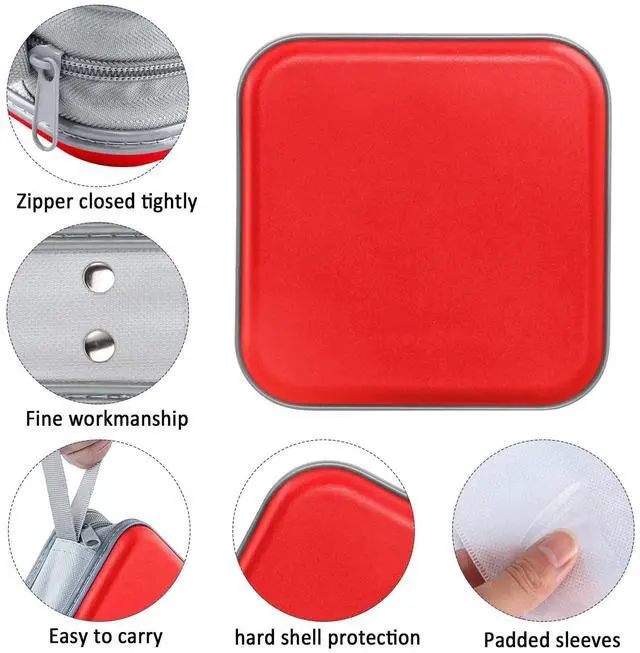 CD Case, 40 Capacity CD/DVD Case Holders Wallet Hard Plastic DVD Disc Cases Storage Binder for Car Home Office Travel (Red)