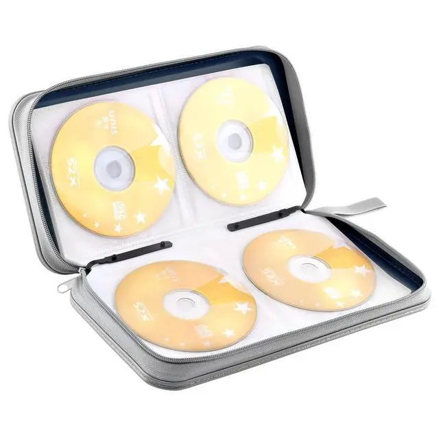 It is compact and portable, holding 80 CDs or DVDs with zippered closure without being super big and bulky.