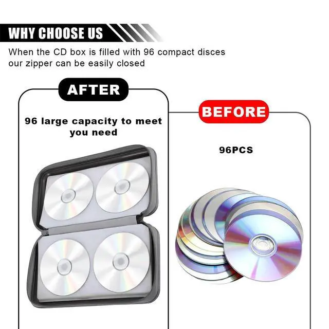 • Zipper Design: The CD/DVD case holder with zipper closure ensures that your CDs stay securely in place, even when the case is fully loaded. The smooth, easy-to-use zipper allows for quick access to your discs, enhancing overall convenience.