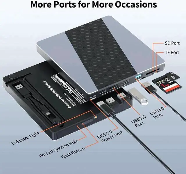 ![Alt view image 6 of 7 - Vszerda External CD DVD Drive for Laptop, [7 in 1] Portable CD Player DVD Burner with 4 Ports USB A & SD/TF Card Reader, Support Faster Transfer Speed CD 8X DVD 24x for Windows 11/10/7 MacOS and More](https://c1.neweggimages.com/productimage/nb640/B4D1D260207072N7OBF.jpg)