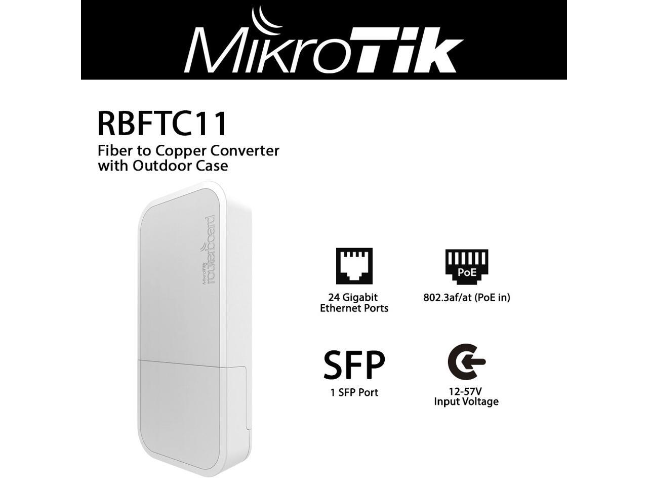 Mikrotik RBFTC11 Fiber to Copper converter 12-57V PoE with 802.3af/at Support and Outdoor Case