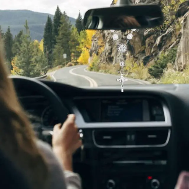 • Exquisite Craftsmanship: The car hanging pendants contain chains, beads, cross pendant, and badge. The chain is coated with silver color, and the beads are polished. The surface is glossy.
