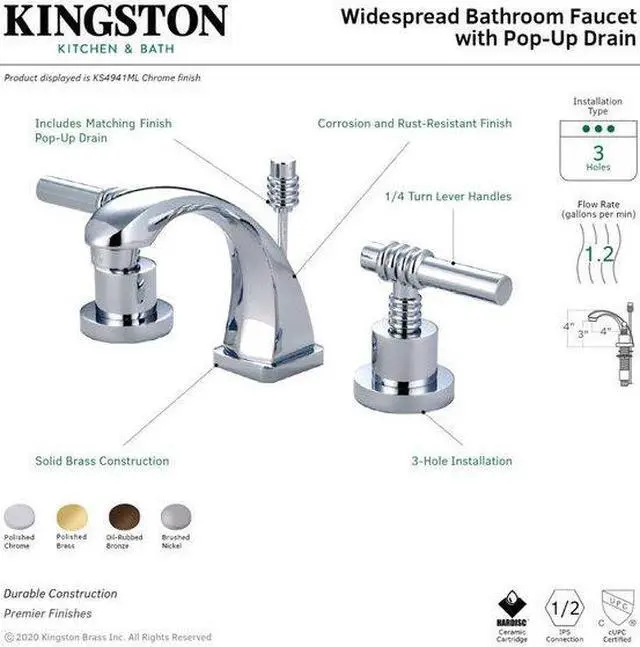 Two Handle Deck Mount- 3 Hole Sink Application- 4 in. to 8 in. Mini-Widespread- 3 hole 4 in. to 8 in. center spread installation- Fabricated from solid brass material for durability and reliability- Premium color finish resist tarnishing and corrosion- 1/4 turn On/Off water control mechanism- 1/2 in. IPS male threaded shank inlets- Ceramic disc cartridge- 2.2 GPM (8.3 LPM) Max at 60 PSI- Integrated removable aerator- 4 in. spout reach from faucet body- 4-1/2 in. overall height.