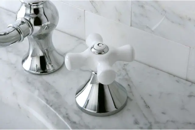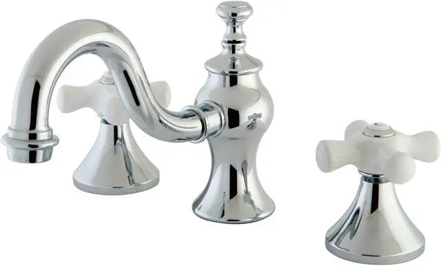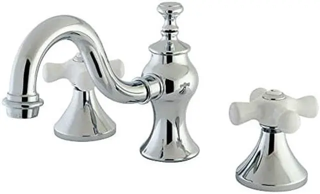 With a long curved spout and smooth lines- the Duchess widespread lavatory faucet brings style and elegant to any home bathroom. Manufactured with solid brass- this bathroom faucet utilizes a ceramic disc cartridge system and is in 4 tarnish-resistant finishes. The classy cross handles operate easily and add the final touches to this classic bathroom faucet. A brass drain is included.