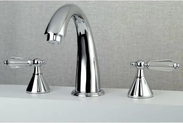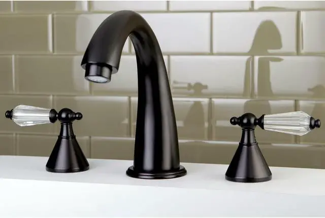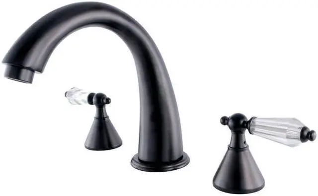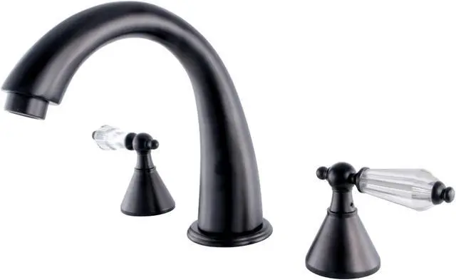 Add some sparkle to your bathroom with this roman tub filler from the Celebrity collection. With elegant crystal lever handles- this faucet features a curved spout and is manufactured from solid brass for durability. The faucet uses ceramic disc cartridges for drip-free performance. This are in4 tarnish and corrosion resistant finishes: Polished Chrome- Polished Brass- Oil Rubbed Bronze or Satin Nickel. Add this faucet to your bathtub to complete the perfect look.