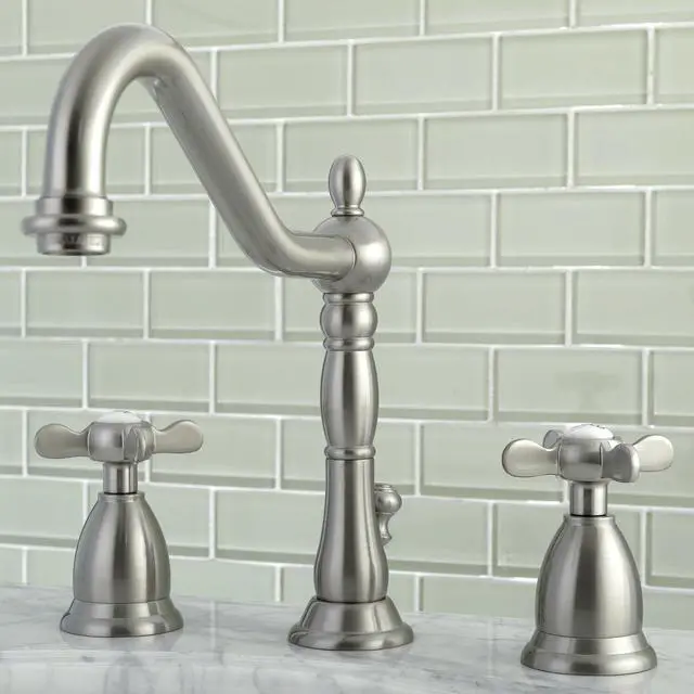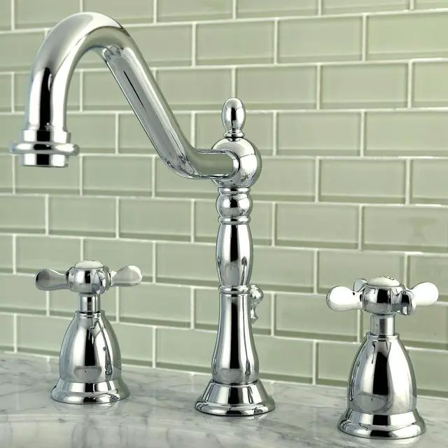 With a tall traditional spout and smooth escutcheons- the Essex widespread lavatory faucet brings elegance and durability to any home bathroom. With solid brass construction- this faucet utilizes a ceramic disc cartridge system and is in 4 easy to maintain and tarnish-resistant finishes. The bold cross handles and smooth lines give the final touches to this classic bathroom ensemble.