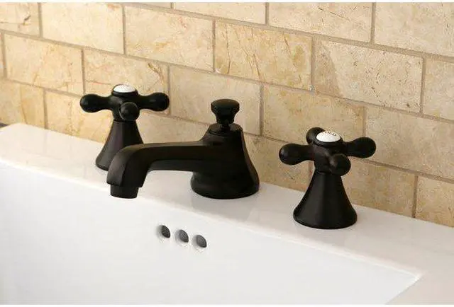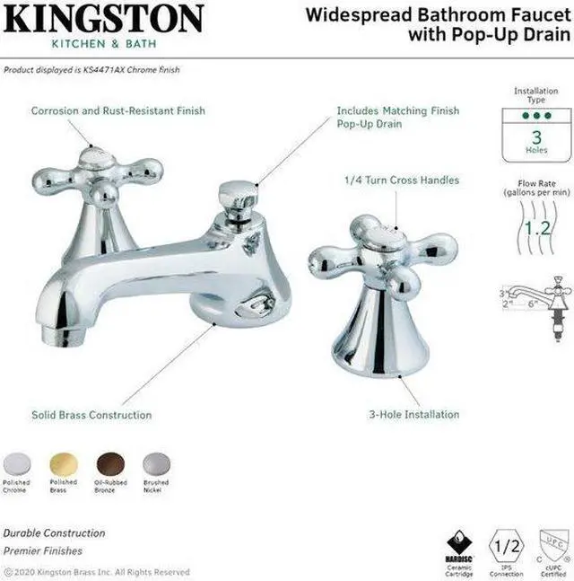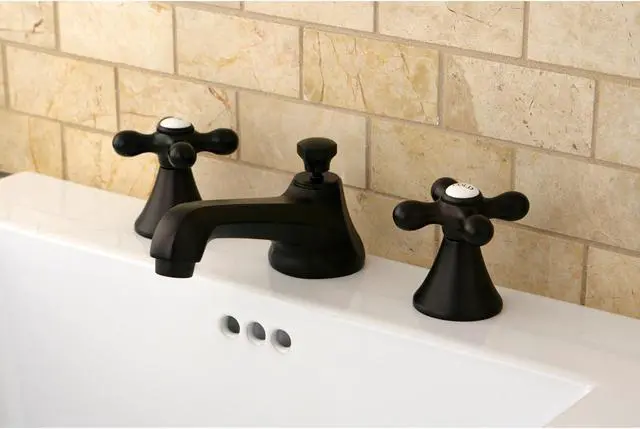 Kingston Brass KS4475AX Metropolitan Widespread Lavatory Faucet with Cross Handle & Brass Pop-Up, Oil Rubbed Bronze