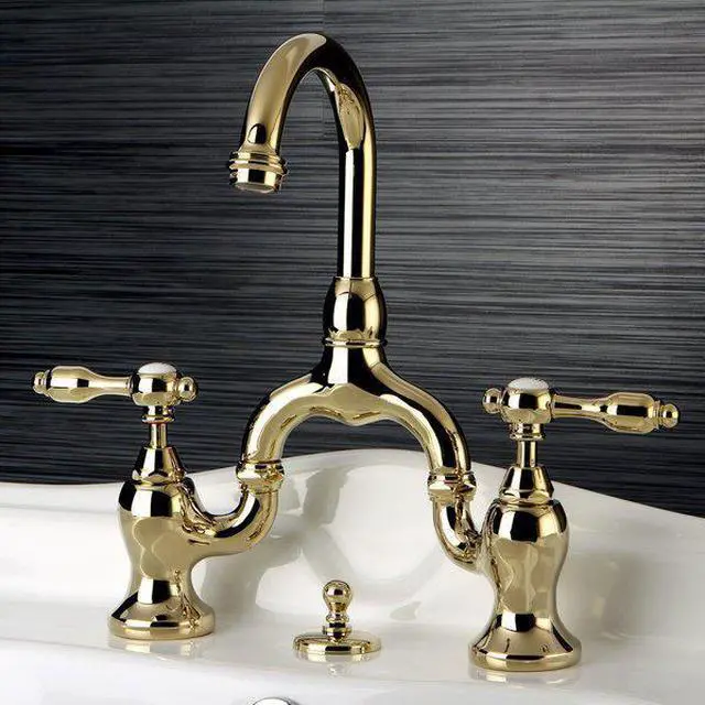 A unqiue design that?'s both modern and vintage at the same time. The Tudor bridge faucets has two lever bodies that curve interconnected with the long neck piece in between. It's heavy duty brass construction gives it a long lasting life span that will keep your bathroom beautiful for ages.