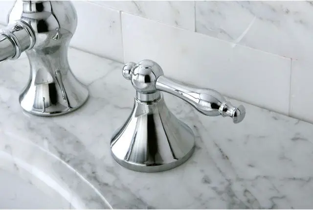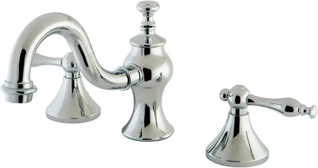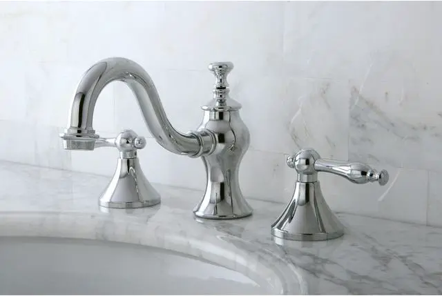 With a long curved spout and smooth lines- the Bel Air widespread lavatory faucet brings style and elegant to any home bathroom. Manufactured with solid brass- this bathroom faucet utilizes a ceramic disc cartridge system and is in 4 tarnish-resistant finishes. The classy cross handles operate easily and add the final touches to this classic bathroom faucet. A brass drain is included.