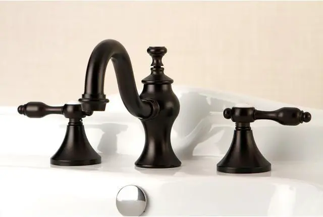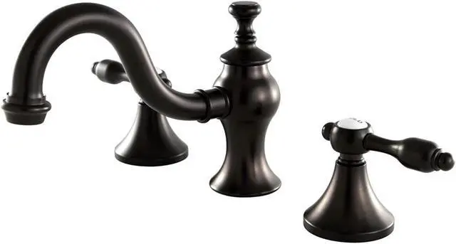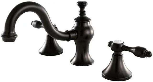 With a long curved spout and smooth lines- the Tudor widespread lavatory faucet brings style and elegant to any home bathroom. Manufactured with solid brass- this bathroom faucet utilizes a ceramic disc cartridge system and is in 4 tarnish-resistant finishes. The bold lever handles operate easily and add the final touches to this classic bathroom faucet. A brass drain is included.