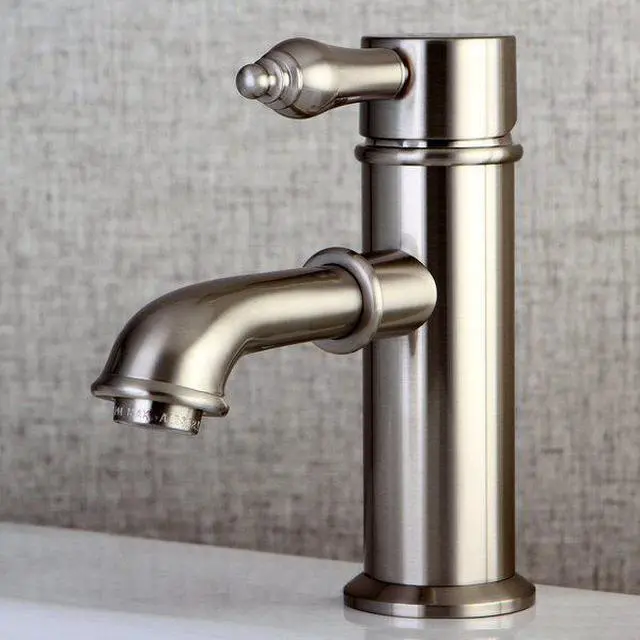 Kingston Brass KS7418AL Single Lever Handle Lavatory Faucet with Brass Pop-Up & Plate, Satin Nickel