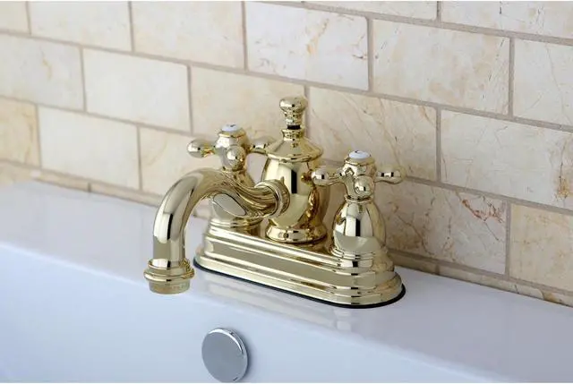 Create an elegant environment in your bathroom by bringing classic details of the countryside with the Kingston Brass English Country 4- Centerset 2 Cross Handle Faucet. With a Vintage and traditional design- this faucet is suitable for traditional and some transitional decor settings. This faucet features an elegant curved spout to provide that period look in the bathroom. This English Country faucet features solid brass construction for outstanding durability and reliability. This faucet incorporates drip-free ceramic disc cartridges and installs on standard 1/2- plumbing connections. Includes a premium brass drain.