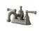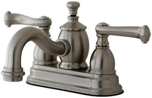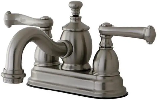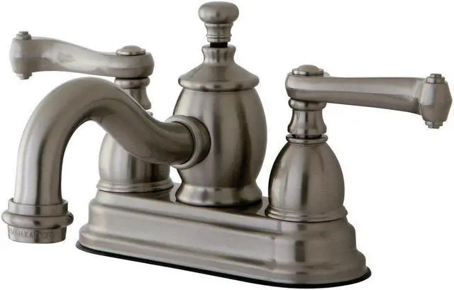 With elegant French scroll handles- the Kingston Brass Royale 4- Centerset 2-Handle Faucet brings a sense of luxury and royalty to the home bathroom. Featuring solid brass construction- this faucet is both durable and reliable and incorporates ceramic disc cartridges for drip-free performance. The faucet's Victorian curved spout gives the faucet the period look for any bathroom. Faucet installs on standard 1/2- plumbing connections and includes a brass pop-up drain.