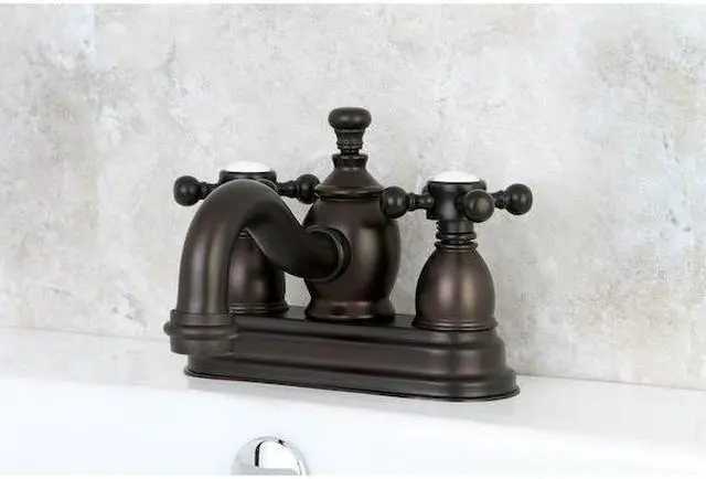 With a Victorian curved spout- the Kingston Brass English Country 4- Centerset Faucet brings a Vintage and Luxurious atmosphere to any home bathroom. The two cross handles are elegantly designed and operate easily to start water flow. The faucet features solid brass construction for outstanding durability and reliability and incorporates drip-free ceramic disc cartridges. This faucet will pair well with almost all traditional decor settings and installs on standard 1/2- standing plumbing connections. Includes a professional grade brass drain.