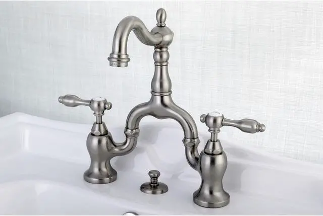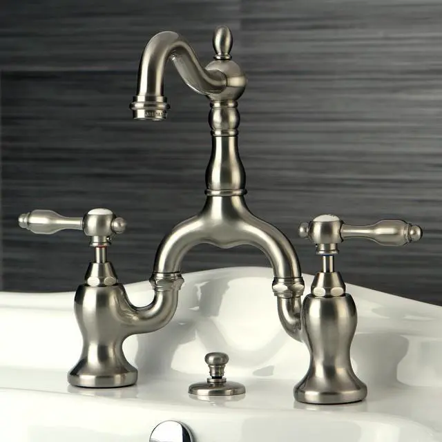 A unqiue design that?'s both modern and vintage at the same time. The Tudor bridge faucets has two lever bodies that curve interconnected with the long neck piece in between. It's heavy duty brass construction gives it a long lasting life span that will keep your bathroom beautiful for ages.