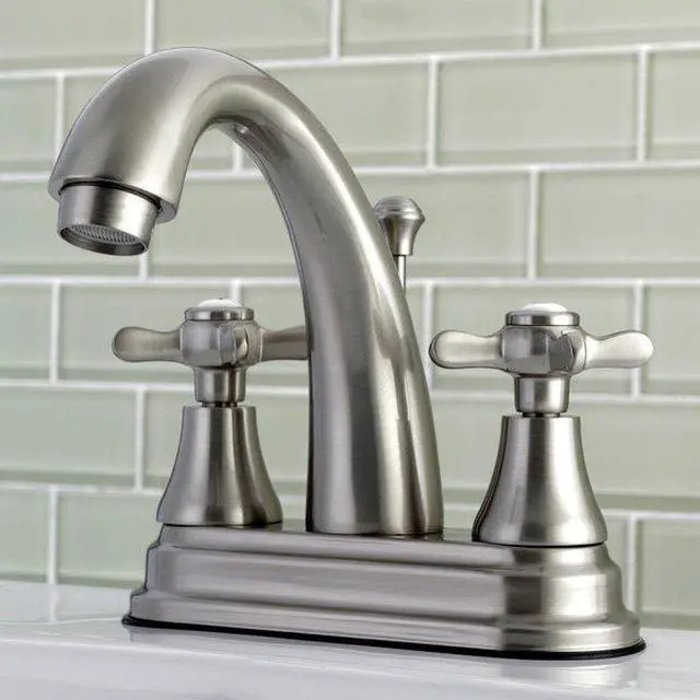 With a curved spout and a transitional fee- the Essex centerset lavatory faucet brings elegant styling and durability to any home bathroom. Manufactured from solid brass- this faucet utilizes a ceramic disc cartridge system and is obtainable in 4 tarnish-resistant finishes. The elegant cross handles and bell shaped escutcheons provide the final details to this classic faucet.