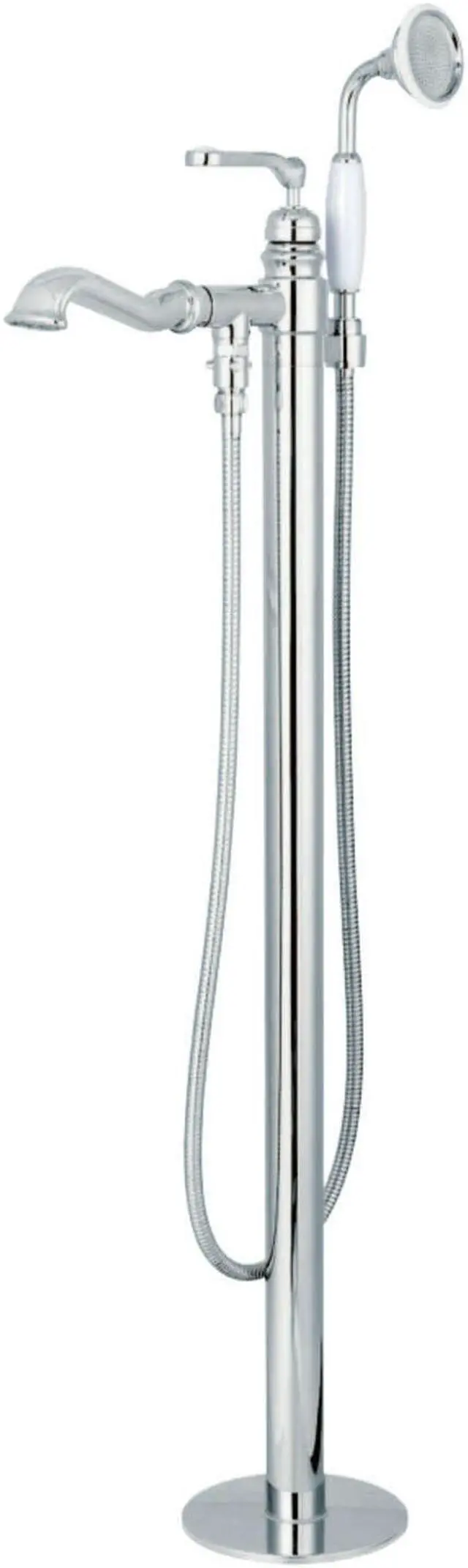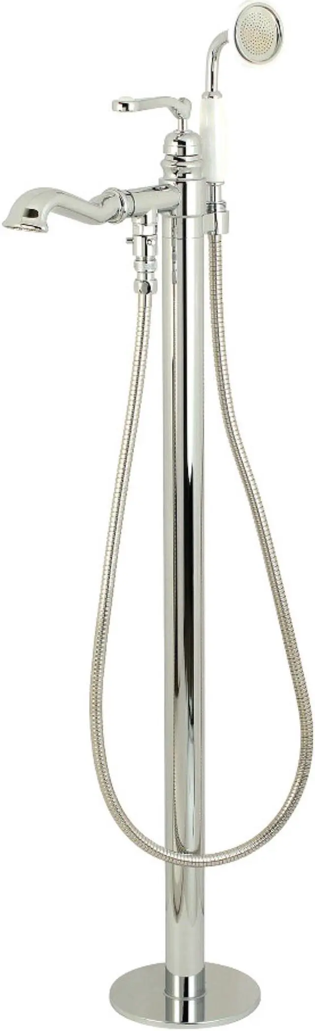 Featuring a sleek singular lever handle- this Royale freestanding Roman tub filler brings about the elegance of a unique traditional architecture to pair with your bathroom tub. While the faucet is overall composed of solid brass- it offers long-lasting durability and reliance as its solid build is furnished with a variety of tarnish and corrosion-resistant finishes Polished Chrome- Satin Nickel- Satin Brass- Polished Brass- Polished Nickel- and Oil Rubbed Bronze . Utilizing a tough ceramic disc cartridge- the faucet is designed with a hand shower which provides a water flow rate at 1.8 GPM/6.8 LPM from a 59- shower hose for ease in bathing. With a strong water flow rate of 7.0 GPM/26.5 LPM at 80 PSI- the faucet will be an extravagant addition of traditional elegance and luxury to your bathroom ensemble.