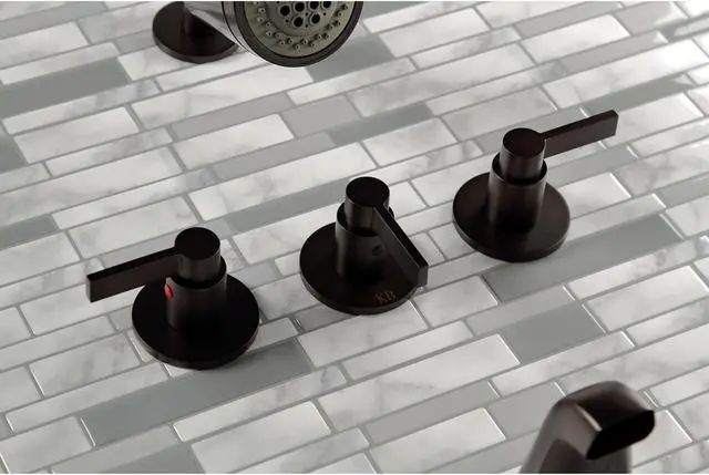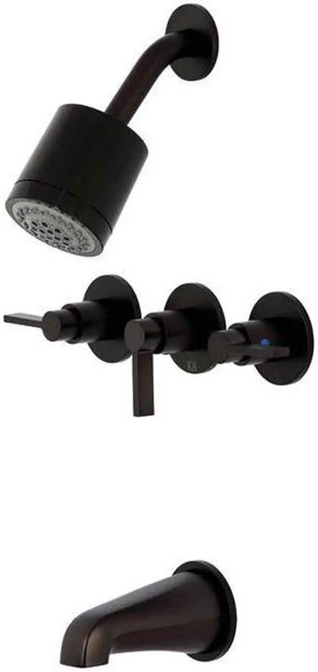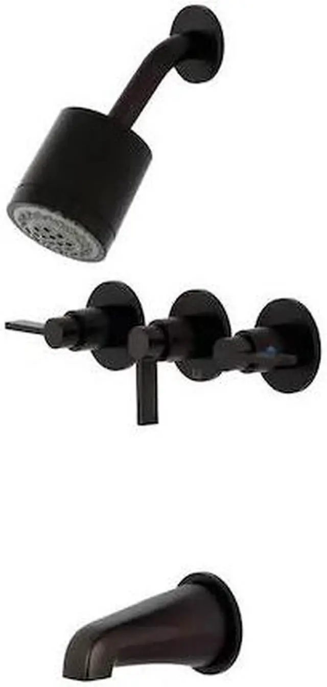 The chic fashion of this tub and shower faucet is distinguished by its expressive geometric features- propelling it into contemporary design. Complete with easy-to-turn lever handles- an optimum bathing experience awaits. Enjoy the sturdy brass construction and premium oil rubbed bronze finish for a fixture that will last for years to come. Internal valve hardware is included for your use.