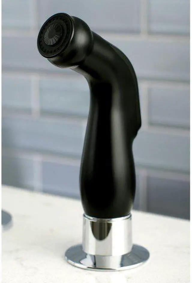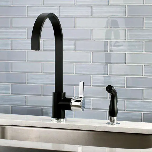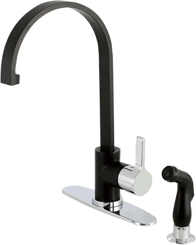 Beautifully sleek in contemporary style, this single handle kitchen faucet from the Continental Collection adds the gleam of modern elegance to your kitchen design. Furnished with an exquisitely coordinated matte black and polished chrome finish, the faucet is available with a matching side sprayer for an improved cleaning experience. Composed of strong solid brass and ABS construction, the faucet utilizes a ceramic disc cartridge while built as a deck mounted single hole installation faucet with a deck plate. Finalize your kitchen style with the smooth design of the kitchen faucet.