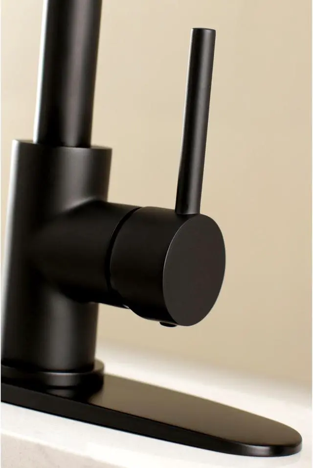 Elegantly styled to add an air of charming sophistication, this Concord Collection centerset kitchen faucet finds itself beautifully standing with an air of contemporary brilliance. Crafted from high quality solid brass and ABS composition, the faucet offers a smooth water flow rate of 1.8 GPM at 60 PSI while making use of a ceramic disc cartridge. Built with a deck mounted design, the faucet is constructed as a single handle 8" centerset faucet with a pull down sprayer for an additional alleviation of cleaning dishes. Standing out with an appealing matte black finish, the faucet will bring a hint of stunning grandeur to your kitchen ensemble.