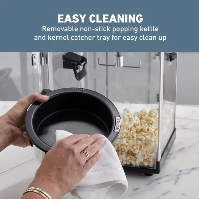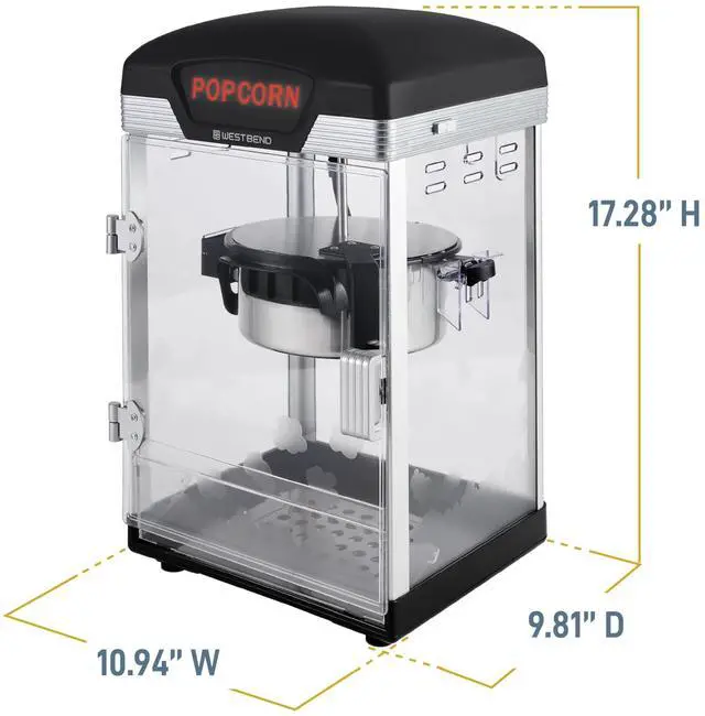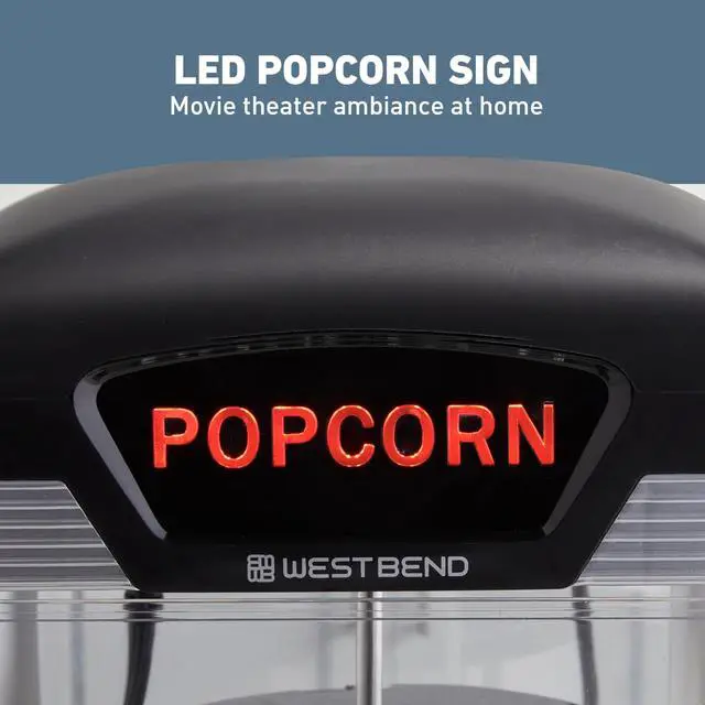 ? The vintage-style popper includes a serving scoop, kernel measuring cup and oil measuring spoon. Ideal for game days, movie nights, parties and more, the West Bend Theater Crazy Popcorn Machine lets you enjoy fresh movie-style popcorn from the comfort of your home.