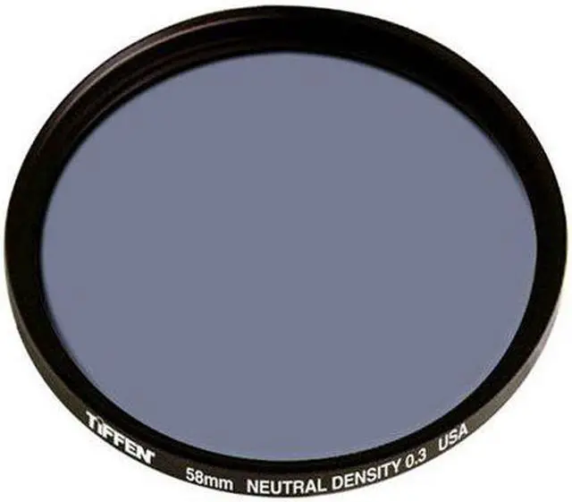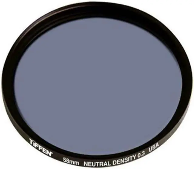 The Tiffen 58mm 0.3 Neutral Density Filter reduces the amount of light passing through the camera lens without changing the color of the scene. They are especially useful in bright light conditions to help prevent overexposure. Neutral Density filters also allow proper exposure at a wider lens opening for reduced depth-of-field to highlight a key subject by making the foreground and/or background out of focus.Features: Eliminates overly bright, washed-out imagesBalances exposureControls depth-of-fieldAllows slower shutter speeds to produce blurred motion effects