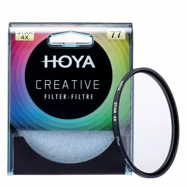 HOYA star filters have lines etched into the surface of the high-quality optical glass of the filter in order to create the star effect. Each of the filters, STAR 4X have different patterns of lines etched into the glass to create the number of rays of light for the filter.