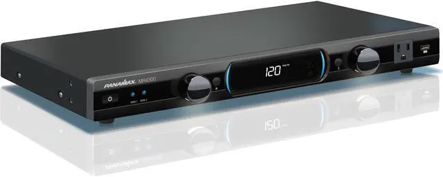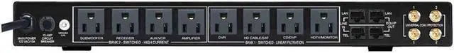 9 Outlet Power Management, specifically designed and engineered to provide protection, filtration and power monitoring for your home theater system. Media lights illuminate equipment.