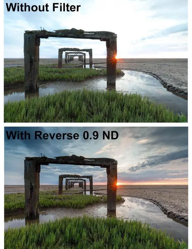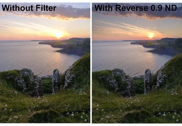 Ideal for capturing stunning sunrises and sunsets, this filter features a unique design where the density is strongest at the horizon line, gradually transitioning upwards. This design is most effective when used with lenses of 24mm or wider on a full-frame DSLR or equivalent. As the name suggests, the Reverse ND filter has a stronger density in the center, with a carefully crafted transition zone that delivers a natural, balanced exposure to the sky.