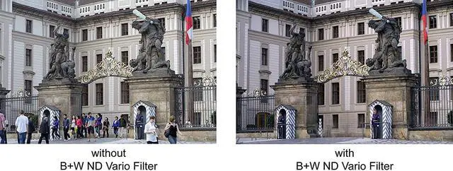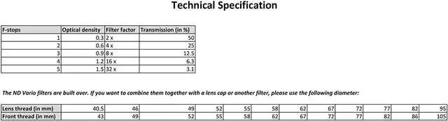 Thanks to its adjustable density control, the B+W ND Vario filter can be adapted to your individual requirements. The XS-Pro mount offers an index setting, allowing the photographer to set the density between +1 and +5 stops. You may combine additional B+W ND filters of fixed value to achieve higher density choices. The ND Vario should be the outermost filter when combined with additional filters.