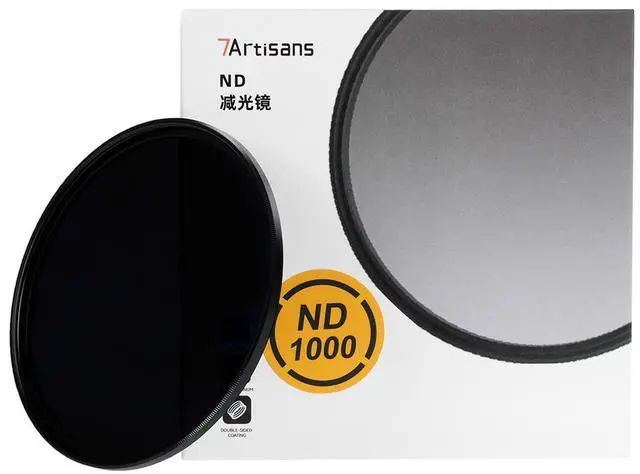 The 7artisans 34mm ND1000 filter for the 9mm F 5.6 lens reduces light intake for long exposure shots, enhancing image quality in bright conditions. Perfect for creative photography.