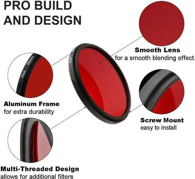 58mm or 72mm lens filter size available: The 6 colored filters come in your option of 52, 58 or 72 mm thread size. Widely compatible with various lenses, regardless of camera models or brand. Please double check the lens filter thread of your camera prior to ordering (marked with the "Ø52 mm" symbol on the lens barrel or attachement point, location of the marking will be vary by manufacturer)