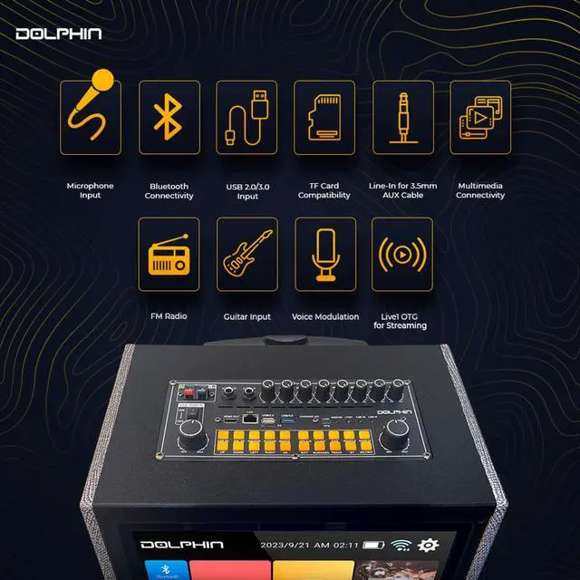 • One 1/4" Microphone Jack with Volume Treble Bass Delay and Echo Controls
