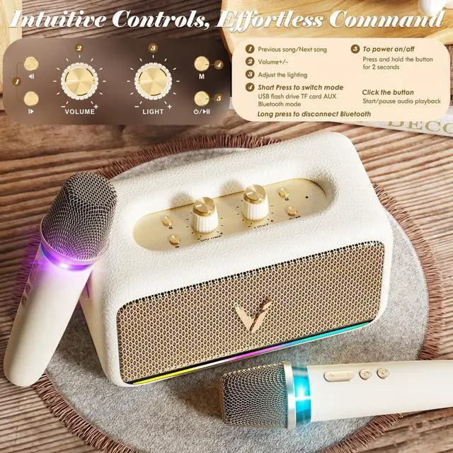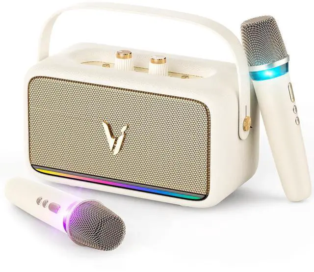 Karaoke Machine with 2 Wireless Mics & Soft Leather Wrap: Enjoy tangle-free singing with the two included wireless microphones, while this portable karaoke machine itself is wrapped in premium soft leather for a secure and comfortable grip. Designed as the perfect karaoke machine for adults and kids, it ensures hours of fun whether at home or on the go
