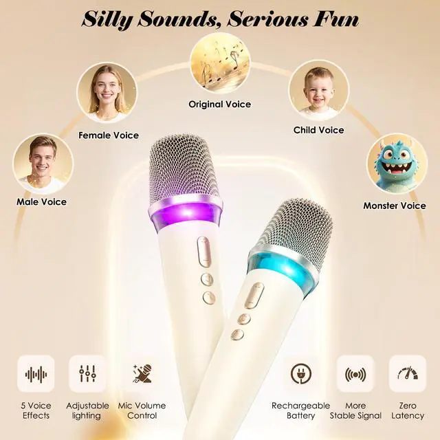 5 Professional Voice Changer Modes Fun for All Ages: Unleash everyones inner performer! Switch between Original, Female, Male, Child, and Monster voices with one tap. This mini karaoke machine for kids brings hilarious fun to singing or storytelling, making it a hit at any family gatheringno app required