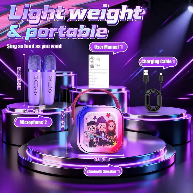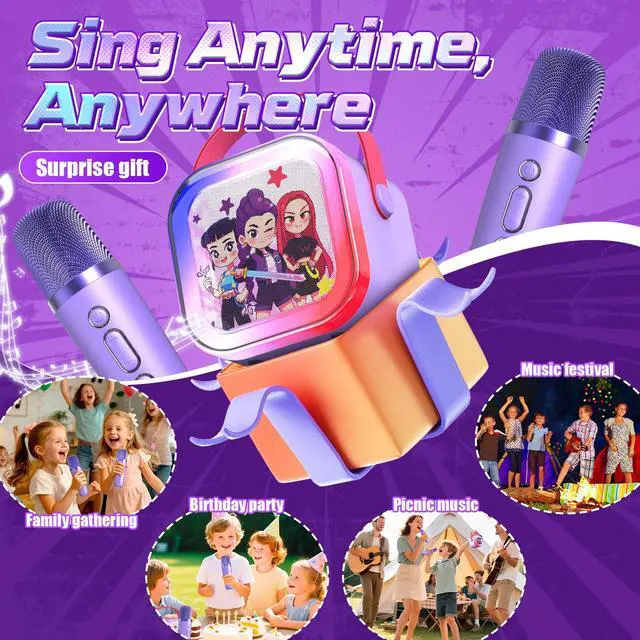Ideal Gift for Kids & All AgesOur mini karaoke machine shines with its stylish design, making it the perfect present for birthdays (ages 3-12+), Christmas, family gatherings, or school events. Compact and portable, it turns any space into an instant stage!