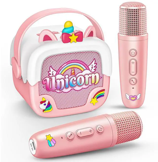 Mini Karaoke Machine for Kids Girls, Unicorn Portable Bluetooth Speakers With 2 Wireless Mic Birthday Gifts for 5 6 7 8 9 10 11 Years Teens Toys for Girls age 4-6 7 8 9 Years Old Girl Gifts Pink