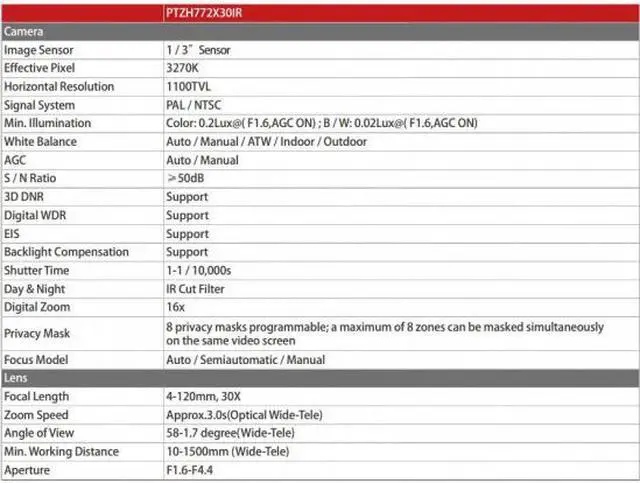 Privacy Masking, 3D DNR, D-WDR, EIS