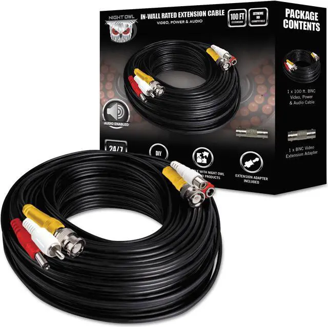 Night Owl 100' In-Wall Rated Video/Power/Audio Extension Cable, Black (CAB-UL2-100VPA)