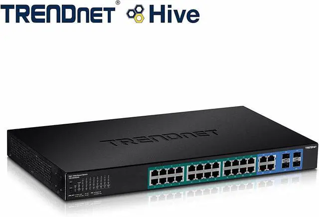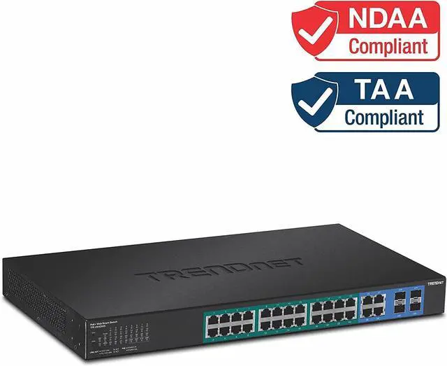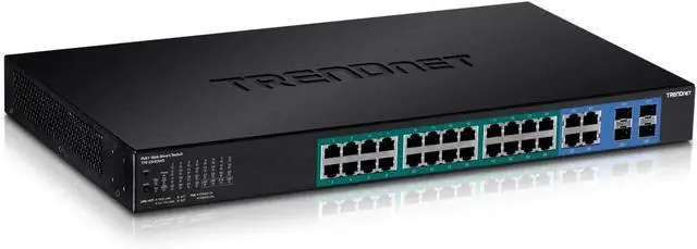 A 185W PoE power budget supplies power to PoE/PoE+ devices.