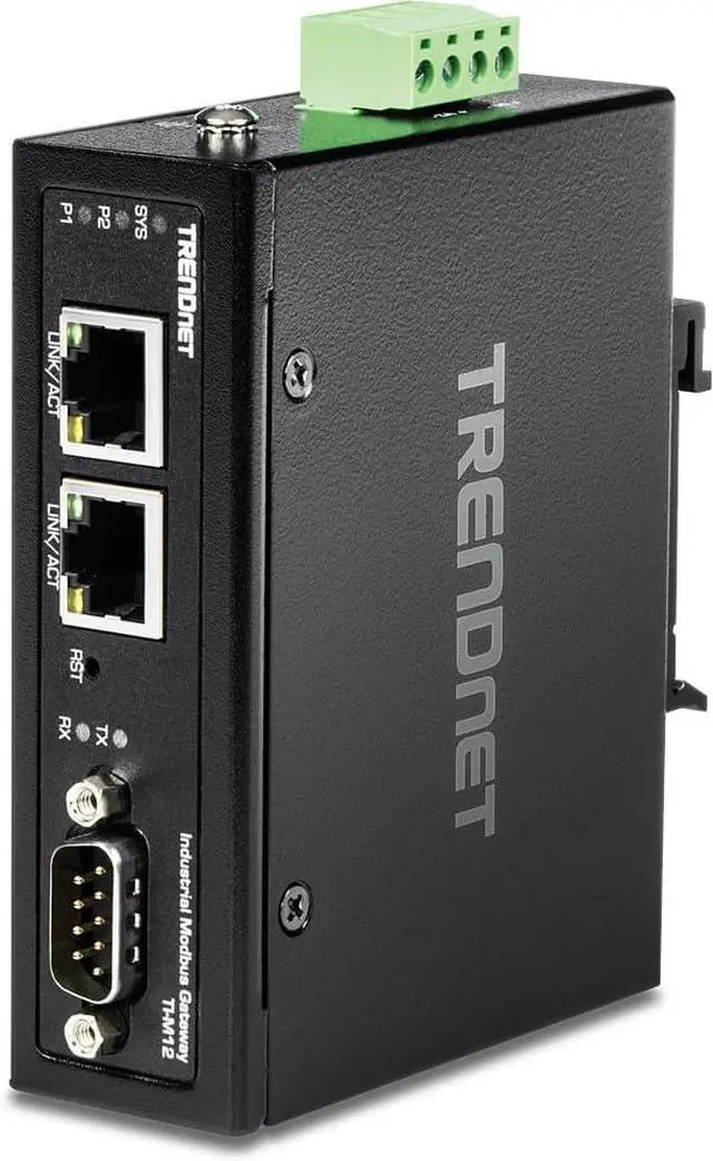 NETWORK SWITCHES POE SWITCHES INDUSTRIAL SWITCHESPATCH PANELS & KEYSTONE JACKS FIBER KVM SWITCHES WIRELESS POWERLINE MOCA ETHERNET ADAPTERS USB,FIREWIRE & ACCESSORIES CABLE TOOLS & TESTERS TRENDnets Industrial Modbus Gateway, model TI-M12, provides one port serial connection and two fast Ethernet ports at distances up to 100m (328 ft.) using Cat5e cabling. Network Serial Connector Industrial Design
