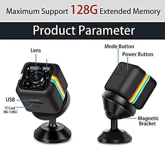 Motion Detection and Loop Recording - This mini spy cam supports 1080P and 720P formats and can be used while charging. Outdoor cameras can intelligently detect movement and record instantly, stopping recording when no movement is detected. Support camera loop recording.