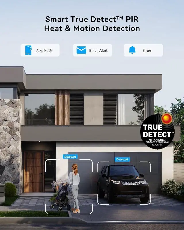 Video analytics trigger recording & Alerts with face detection, line Crossing detection, intrusion detection, person detection & others. True Detect thermal Sensing detects motion by heat, such as from people & cars, to trigger recording and push notifications, virtually eliminating false triggers. The sturdy aluminum construction is built tough for the outdoors or indoors with IP66 weatherproof rating. An 60ft (18M) Ethernet cable is included for connecting the camera to the NVR to transmit power, video & Audio via the same cable.