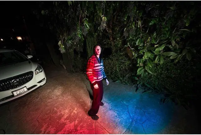 Defend your property & deter intruders with motion-activated police-style red & blue flashing lights & spotlights.