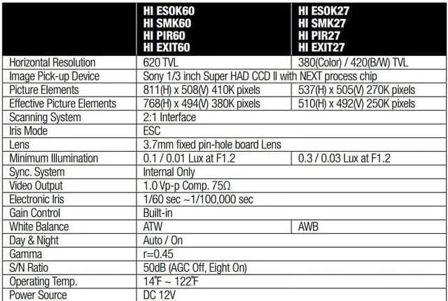 Eyemax Smoke Detector Hidden Camera 620 TVL Day and Night HI SMK 60 feature